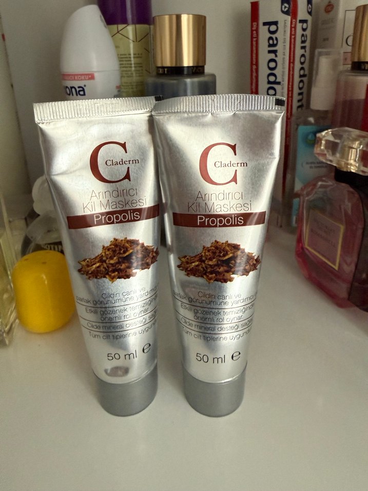 Claderm Propolis içeren 50 ml arındırıcı kil maskesi, cildi temizleyip canlandırmak için uygundur.