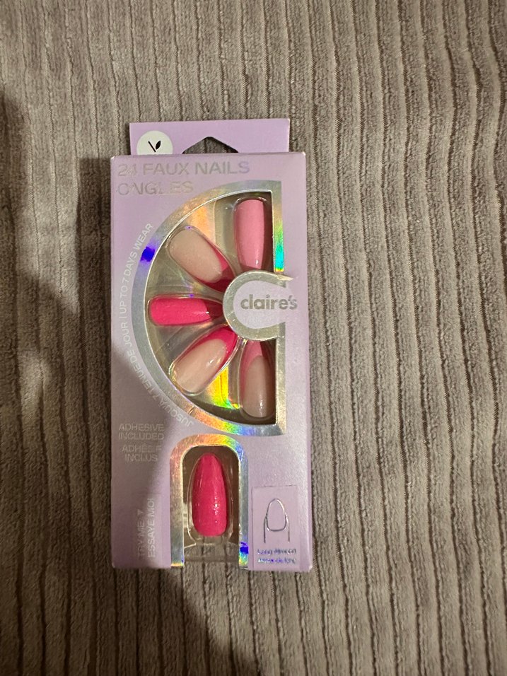 Claire's markalı, pastel pembe tonlarda 24 yapışkanlı takma tırnak seti. Hızlı ve kolay uygulanabilir.