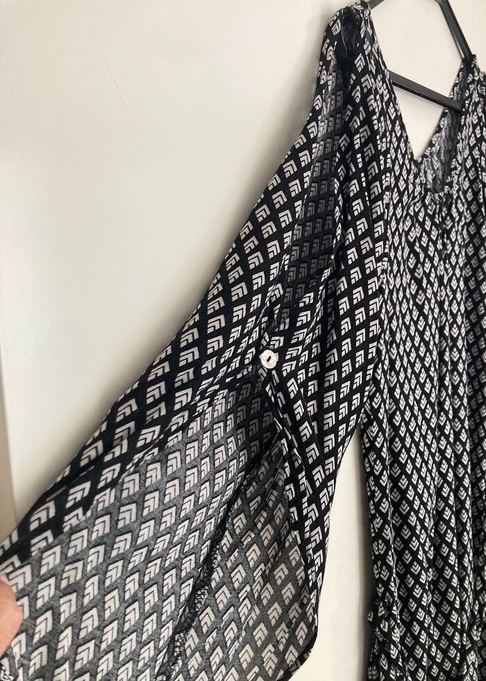 Astarsız, kol dekolteli kuşaklı elbise. Elbise hiç kullanılmadı. S-M beden uyumlu.