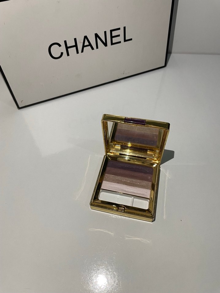 Clarins markalı, açık ve canlı tonlarda bej göz farı paleti. Altın renkli kompakt kutuda,