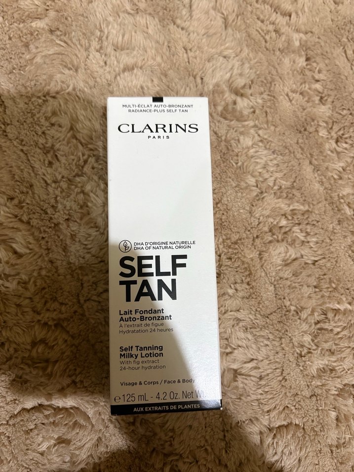 Clarins Self Tan, doğal kökenli DHA içeren, yüz ve vücut için 24 saat nemlendiren otomatik bronzlaştırıcı süt.