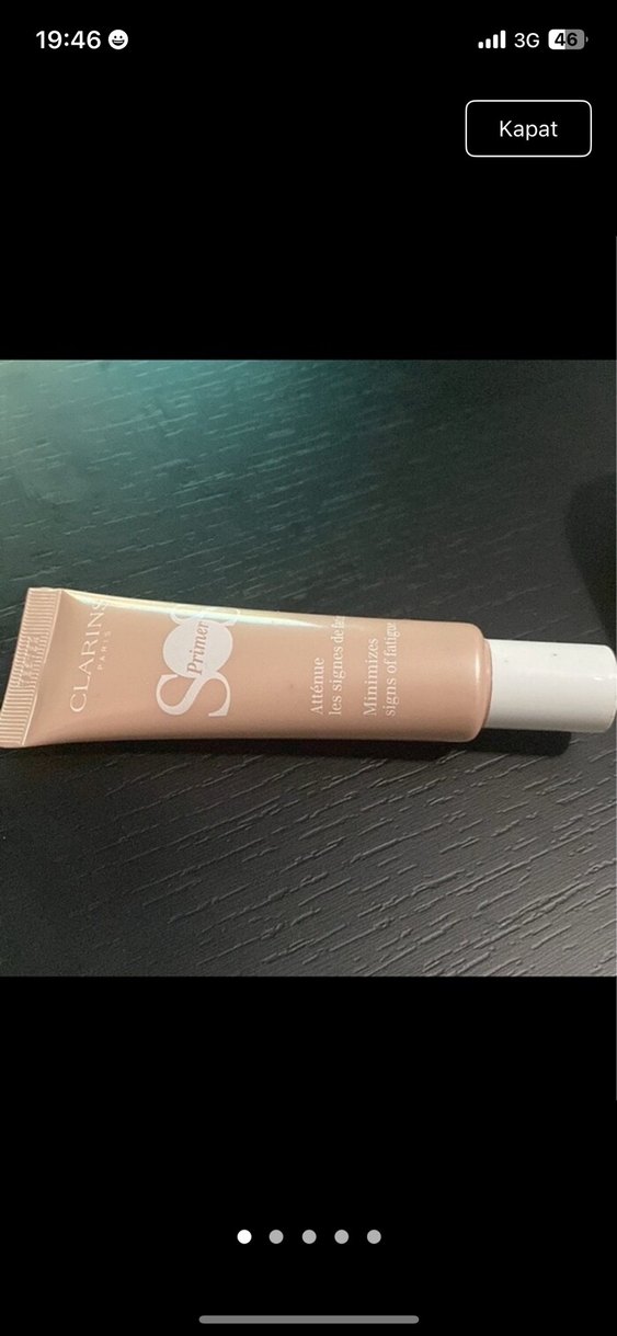 Clarins markasına ait sos primer baz krem, cilt tonunu eşitlemeye ve doğal bir görünüm sağlamaya yardımcı olur. Işıltılı ve mükemmel cilt sunar Beyaz kapaklı tüpte sunulur.