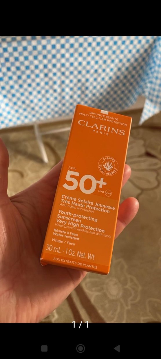 Clarins SPF 50+ güneş koruyucu, yüz için çok yüksek koruma sağlar. Kırışıklık ve lekeleri önlemeye yardımcı olur, suya dayanıklıdır. Bitki özleri içerir. ☀️