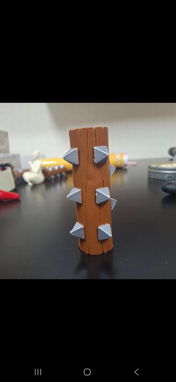 Silindirik şekilli kahverengi ahşap oyuncak, gri sivri uçlu detaylarla tasarlanmıştır. Oynanabilir ve dokunsal bir ahşap objedir.
