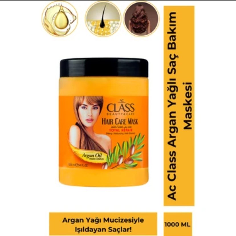 Class argan yağı içeren saç bakım maskesi, saçları besler, onarır ve parlaklık kazandırır. 1000 ml.