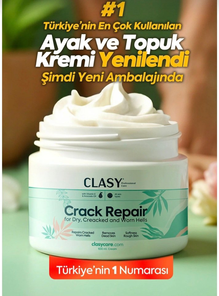 CLASY Ayak ve Topuk Kremi, kuru ve çatlak topuklar için cildi yumuşatır, ölü deriyi giderir ve çatlakları onarır. Yeni ambalajında.