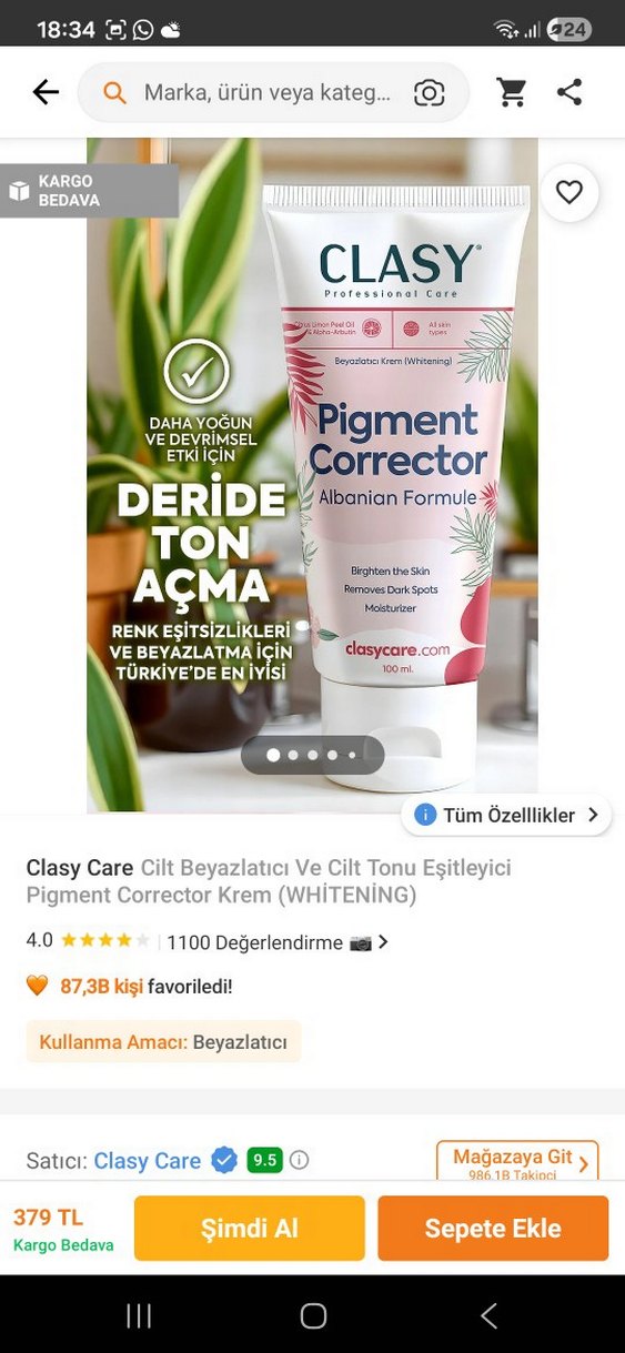 Clasy Care Pigment Corrector krem, cilt tonunu eşitleyip koyu lekeleri giderir. Yoğun nemlendirici ve beyazlatıcı etkisi vardır. 100 ml.1 kez denedim
