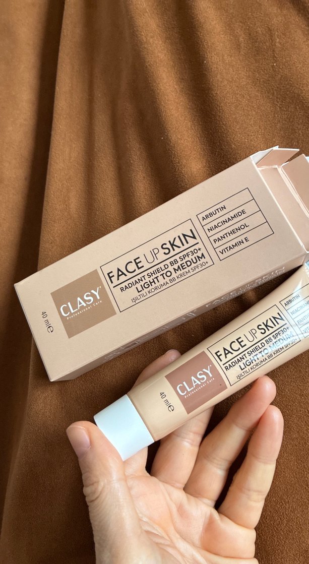 Clasy Face Up Skin açık ten BB krem SPF30 koruma sağlar ve arbutin, niasinamid, panthenol, E vitamini içerir. 40 ml. Sıfır ürün,iade alınmaz