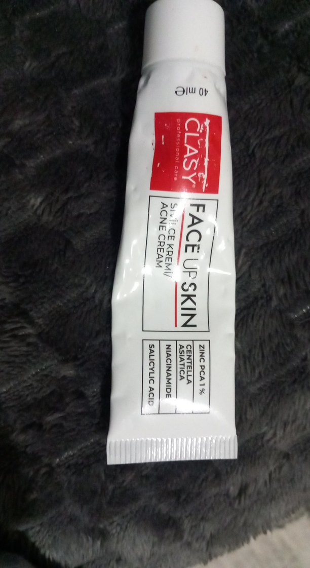 Clasy Face Up Skin sivilce kremi, niacinamide, çinko PCA, salisilik asit ve centella içerir. 40 ml tüpte, akneye karşı bakım sağlar.