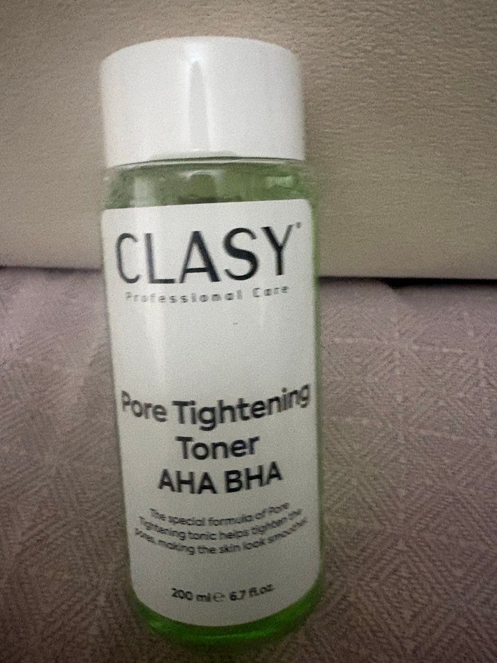 Clasy AHA BHA içeren gözenek sıkılaştırıcı toner, cildi tazeler ve gözenek görünümünü azaltır. 200 ml şişede sunulmuştur.