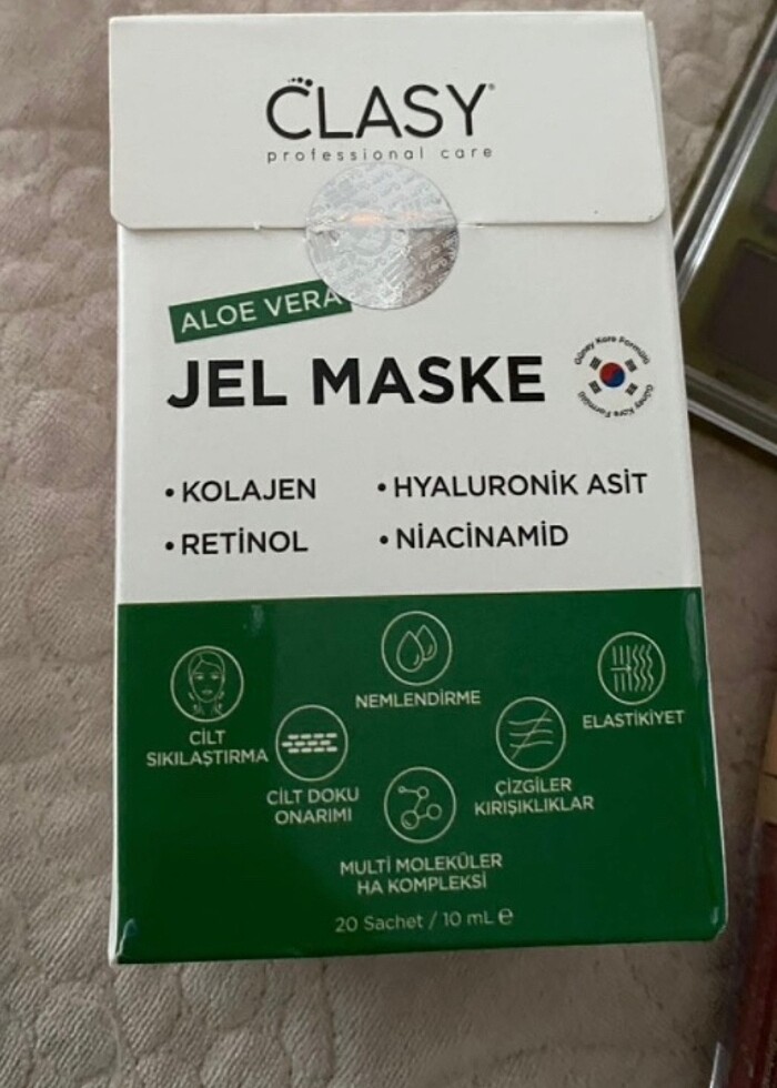 İçinde 20 şase bulunan clasy marka kolajen maske. Sıfır ürün.
