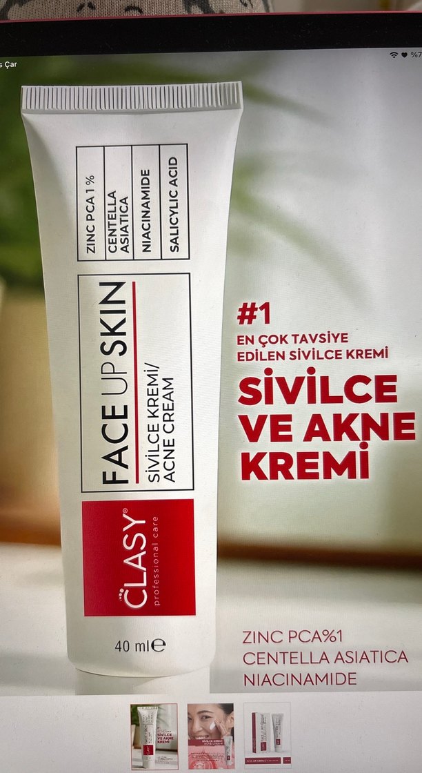 CLASY sivilce kremi, %1 Zinc PCA, Centella Asiatica, Niacinamide ve Salisilik Asit içerir. Akne ve sivilceye karşı etkilidir. 40 ml.