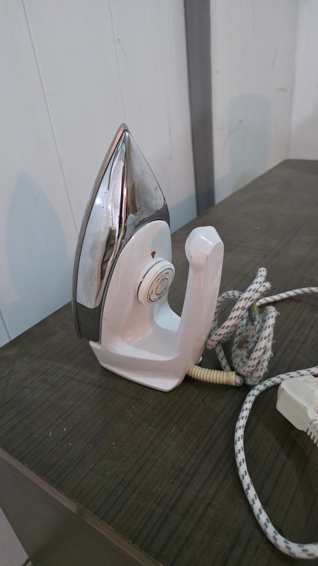 vintage Clatronic LA2171 model ütü, 1200W güç ve 230V-50Hz ile çalışır. Beyaz ve gri renkte, etkili ütüleme için düzgün tabanlıdır. ⚙️