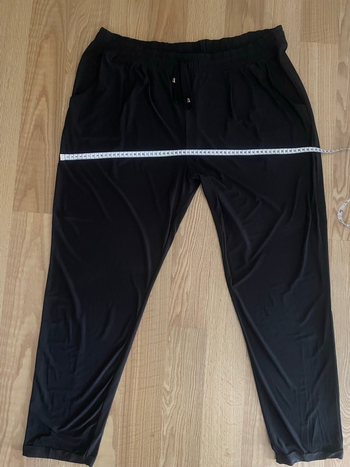 Siyah renkte, rahat kesim ve elastik bel özellikli kadın kumaş pantolon. Sentetik, yumuşak dokulu kumaştan, günlük ve dış mekan kullanımı için uygundur.