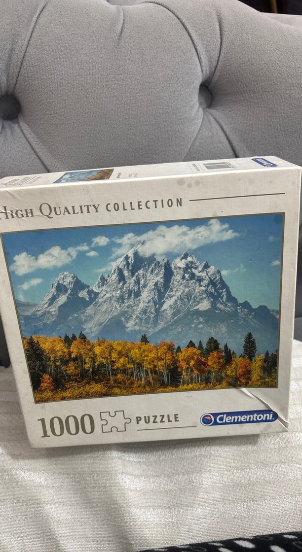 Clementoni markasının 1000 parçalık puzzle'ı, dağ manzarası ve sonbahar ağaçlarını gösterir. High Quality Collection serisine aittir.