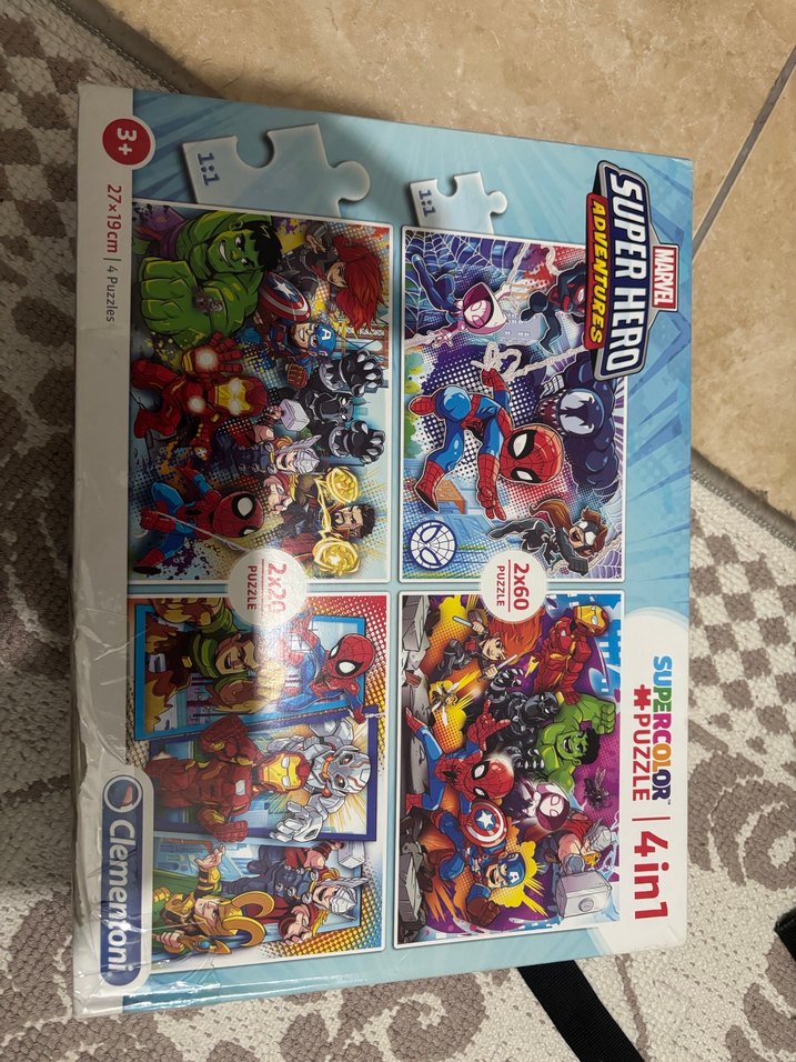 Marvel karakterlerinin yer aldığı, farklı parça sayısında 27x19 cm boyutlarında dört renkli süper kahraman yapbozu seti. 3 yaş ve üzeri çocuklar için uygundur.