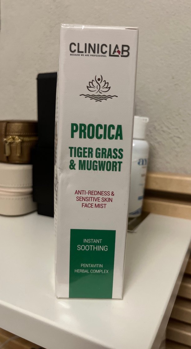 CLINICLAB Procica yüz misti, kaplan otu ve pelin ile hassas cildi anında yatıştırır, kızarıklığı azaltır, bitkisel kompleks ve Pentavitin içerir.