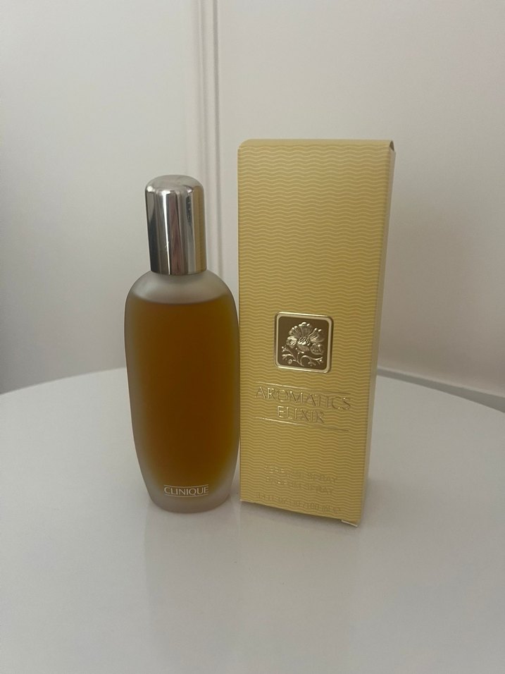 Clinique Aromatics Elixir, klasik tarzda bej ve gri kutusuyla erkek parfümü, zamansız ve kendine özgü bir koku sunar.