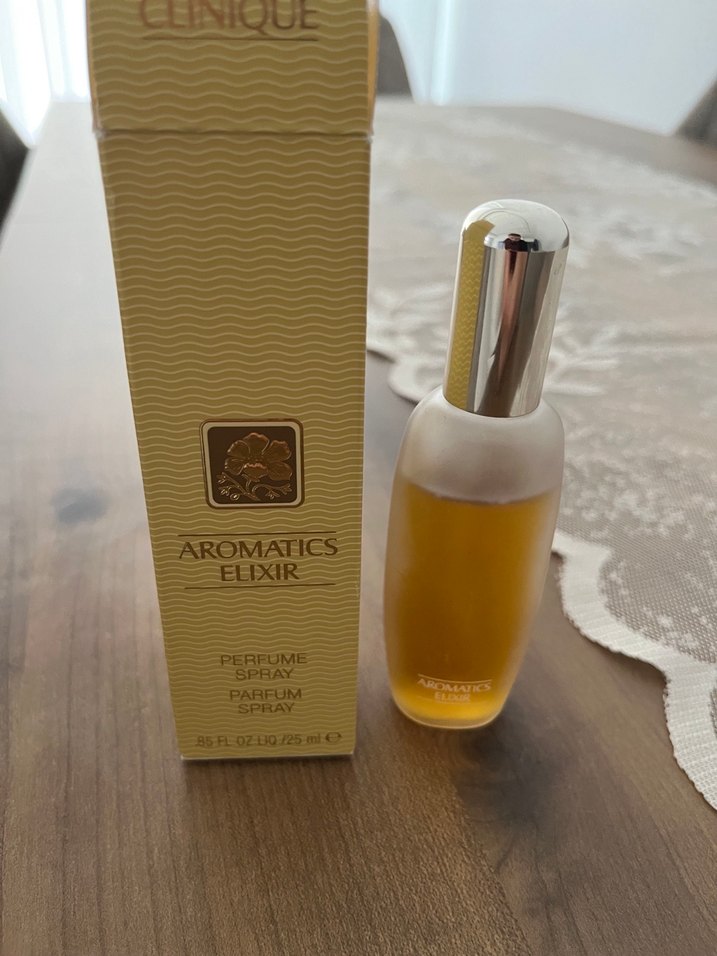Clinique Aromatics Elixir, 25 ml parfum sprey içeren kadın parfümüdür. Zengin ve aromatik kokusuyla öne çıkar.