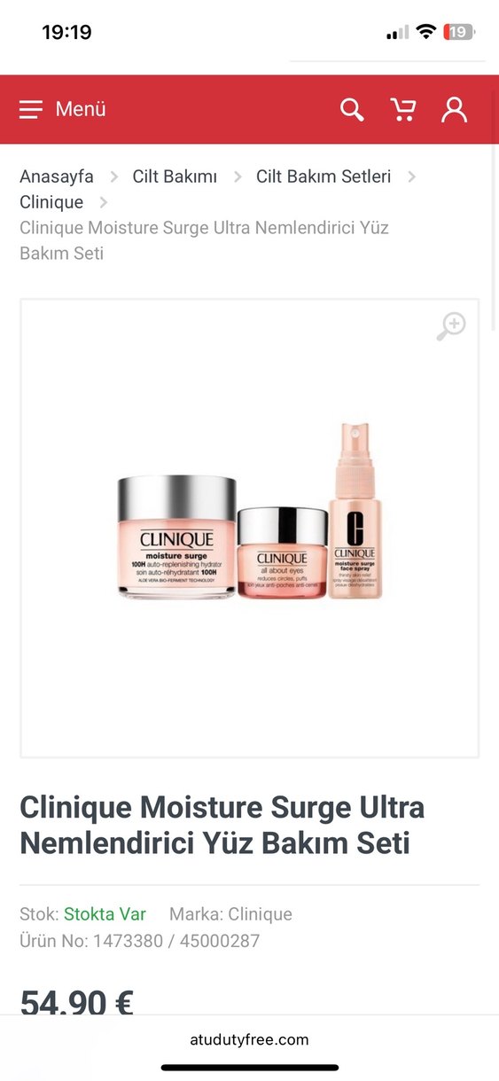 Clinique Moisture Surge Ultra set, yüz nemlendirici, göz kremi ve nemlendirici sprey içerir, cilde yoğun nem sağlar. Duty freeden alindi, orijinaldir, paketi acilmadi ve faturasi mevcuttur. Nemlendirici yuz kremi 125 mldir