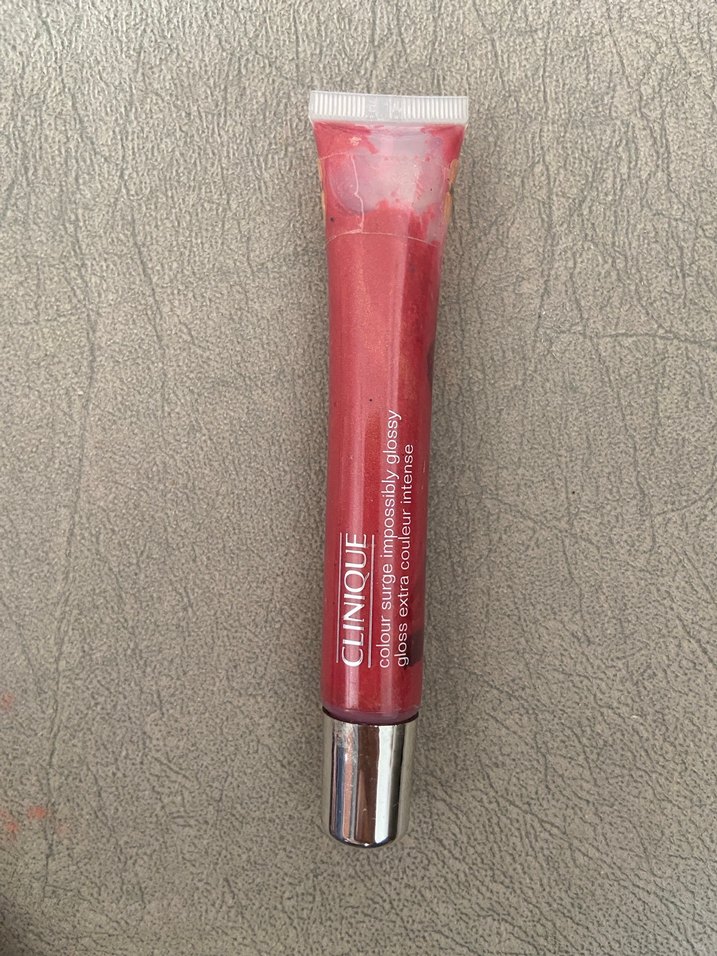Clinique 115 numaralı tüpte parlak kırmızı dudak parlatıcısı, canlı renk ve pürüzsüz doku sunar.