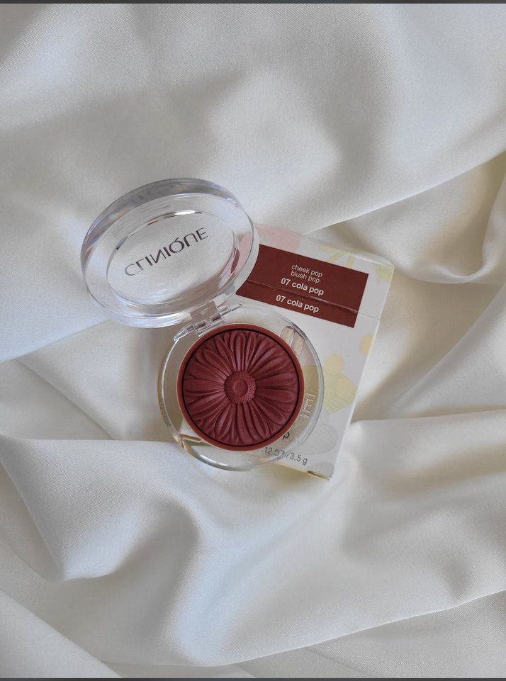 Clinique'nin pastel bordo tonunda 07 Cola Pop isimli allığı, yumuşak çiçek desenli ve şeffaf kapaklıdır.