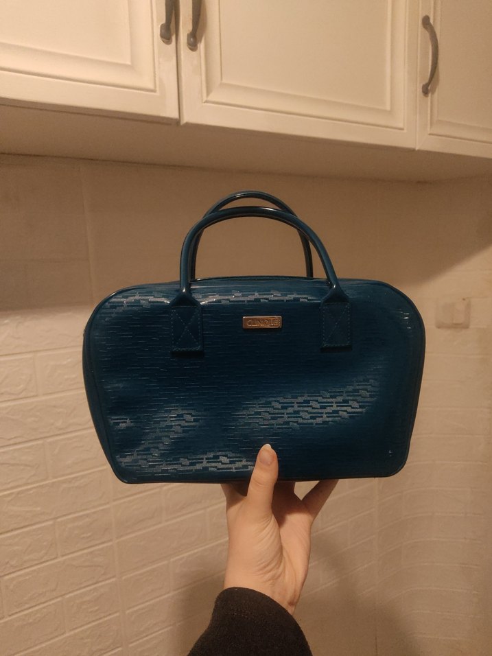 Koyu mavi yılan derisi desenli suni deri çanta, vintage tarzda ve fermuarlı kapamalıdır. Klasik zarafeti Paris havasıyla yansıtır. bazı yerlerinde cizilmeler vardır onun haricinde pek bişiyi yok normal fiyatı 80 dolar civarında yurt dışından alındı Türkiye de muadili yok o yüzden bu fiyata sayıyorum ztn