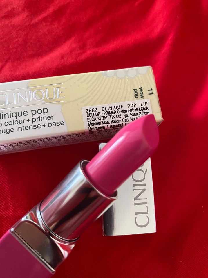 Clinique Pop Lipstick, renkli pembe tonu ve primer bazıyla pürüzsüz sürüm ve kalıcı kullanım sağlar. Sıfırdır.