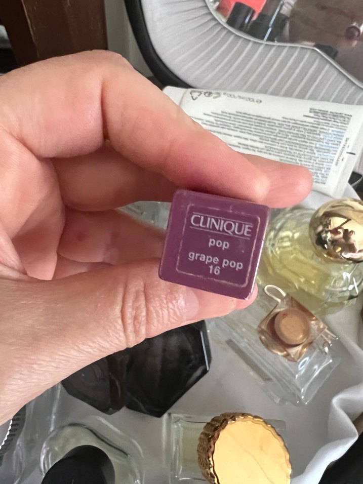 Clinique Pop serisi, parlak mor tonunda Grape Pop 16 numaralı ruj, canlı renk ve parlak bitiş sunar.