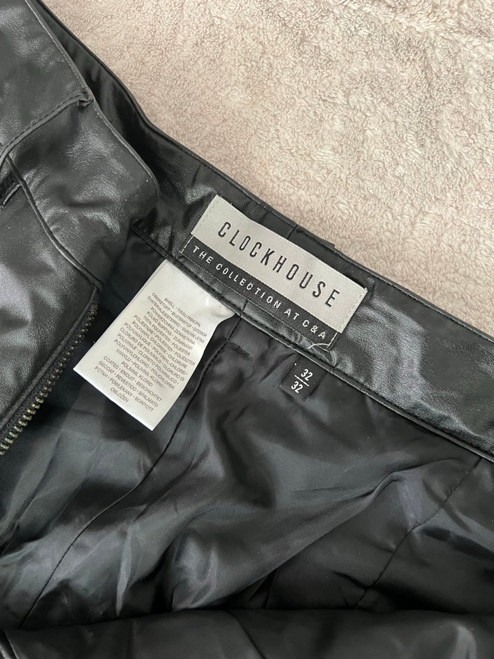 Clockhouse markasına ait, iç kısmı yumuşak astarlı siyah deri görünümlü pantolon beden 32/32.