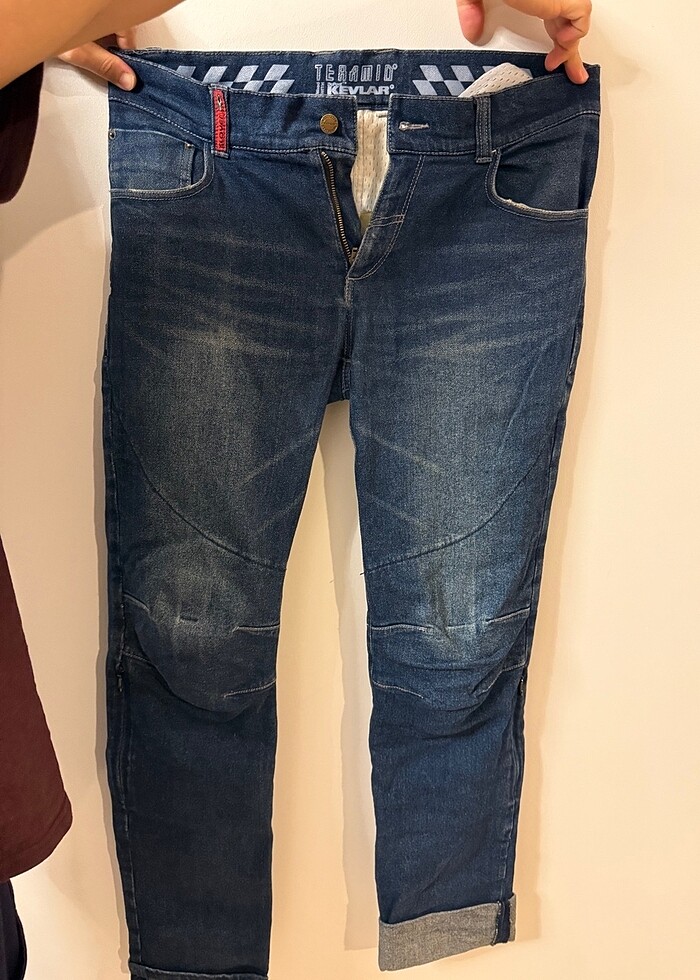 Clover marka kevlar motosiklet kot pantolonu kazasız az kullanılmış