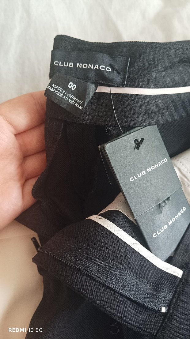 Club Monaco siyah kadın pantolon, regular fit ve midi boyda, ipeksi dokuda. Velcro kapama ve baskılı desene sahip, trend sokak giyimi için uygun. 40 adet pantolon hepsi bu fiyata beden 36-38
