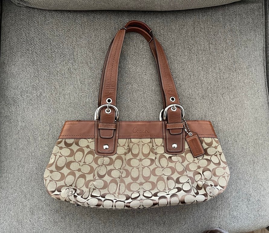 Bütün coach çantalarda oluşan kumaşında yıpranmalar var çok dibine girmeden dikkat çekmeyecek seviyede.deri kısımları diğer coach çantalarımdan farklı çok kaliteli bir deridir elinize alınca anlarsınız.bu ürünün toz torbasını bulamadım furla çantamın torbasıyla göndereceğim.videosu diğer platformda var.