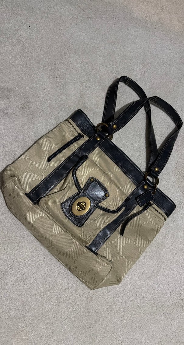 Coach Klasik Desenli Bej Deri Kadın Çanta