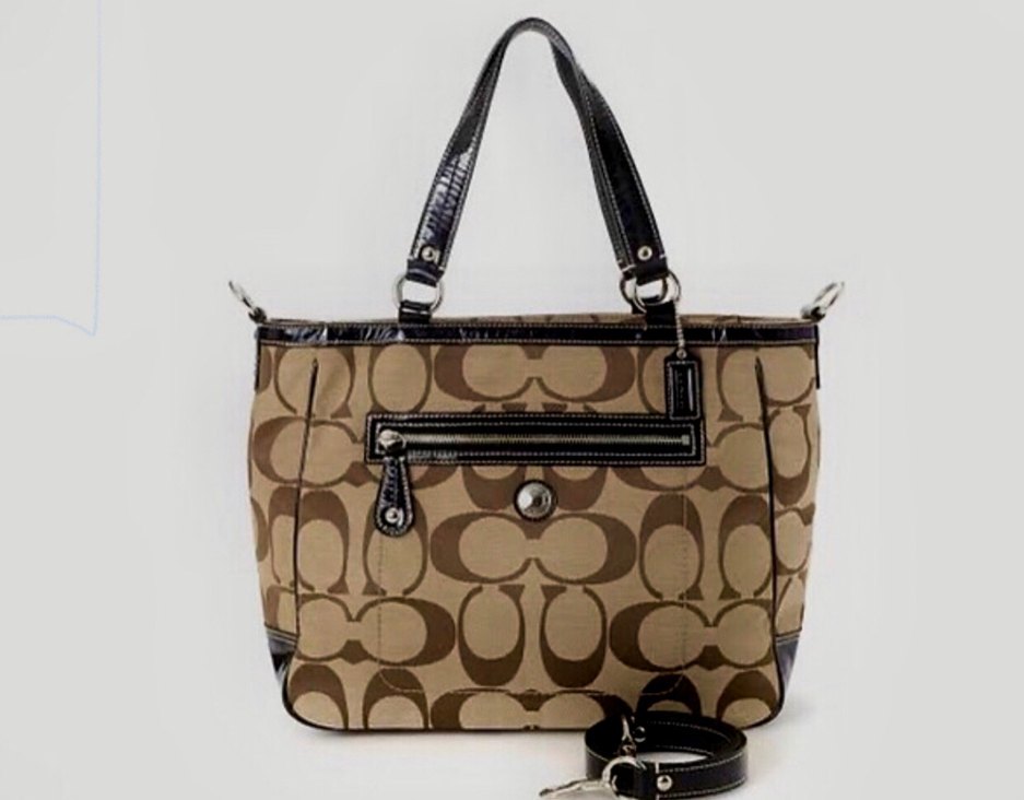 Orijinal Coach Laura imzalı siyah kenarlı monogram kanvas büyük çapraz askısı ile birlikte sadece 1-2 kere kullanıldı ölçüleri uzunluk 41 cm yükseklik 28 cm