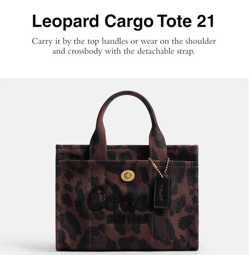 Kahverengi kanvas çanta, koyu leopar desenli ve kemerli tasarıma sahiptir. Üst saplardan taşınabilir veya çıkarılabilir askıyla çapraz takılabilir. 2 hafta önce alındı. Orijinal.