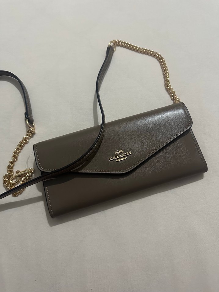 Coach marka amerikadan alındı hiç kullanılmadı hem çanta hem cüzdan olarak kullanılabilir Kahverengi deri kadın çanta, zincir detaylı ve modern klasik tasarıma sahip. Minimalist stil ile günlük kullanıma uygun.