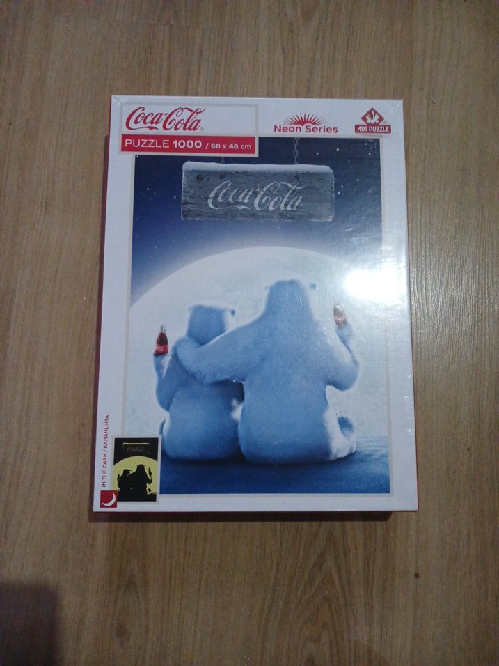 Coca-Cola temalı, 1000 parçadan oluşan ve 68 x 48 cm boyutlarında puzzle. Kutuda kutup ayıları ve Coca-Cola şişeleri yer alıyor. Neon Series koleksiyonundan.