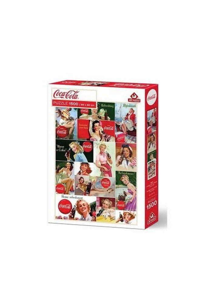 Coca-Cola temalı, 1500 parçadan oluşan ve canlı kırmızı tonlar içeren puzzle. Retro reklam görselleriyle nostaljik bir deneyim sunuyor.