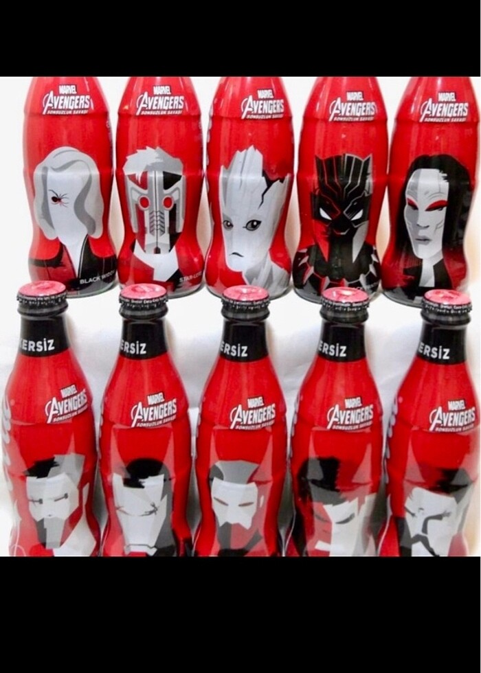 Coca cola 10 şişeden oluşan avengers seti dolu be sorunsuzlar