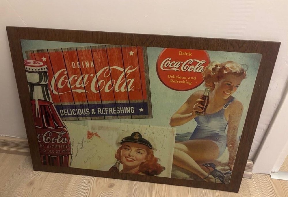 Klasik Coca-Cola logosu ve 'Delicious and Refreshing' sloganlarıyla retro tarzda çizgi roman posteri.