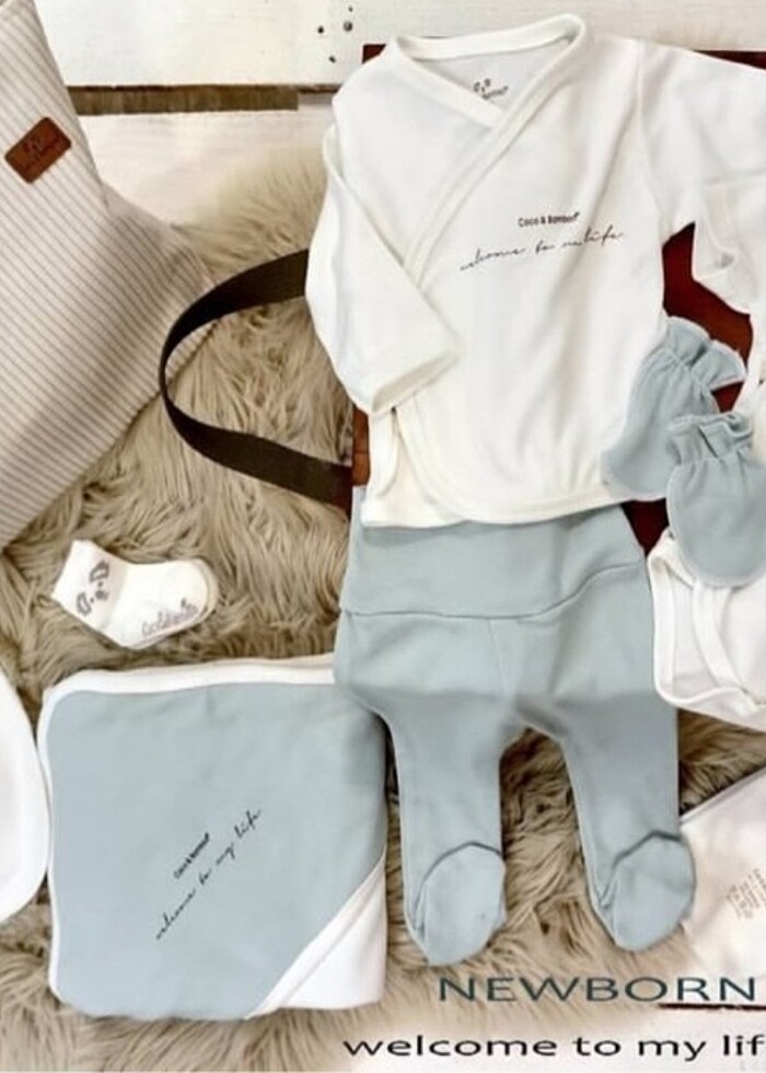 Doğal bambu kumaş organik Yenidoğan set Cocobambu marka 2 set var(11 parça)2 adet pamuklu saklama çantası 1 adet battaniye 1 adet şapka 2 adet eldiven 2 adet kısa kol Bodysuit 1 adet uzun kol Bodysuit 11 parçadır Ayrı olarak Bodysuit 2 adet daha var onları da birlikte göndereceğim