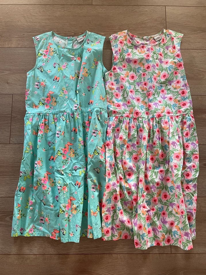 Lcw çocuk 2’li elbise, 10-11 yaş, sarı ve turuncu desenli, sırttan düğmeli.