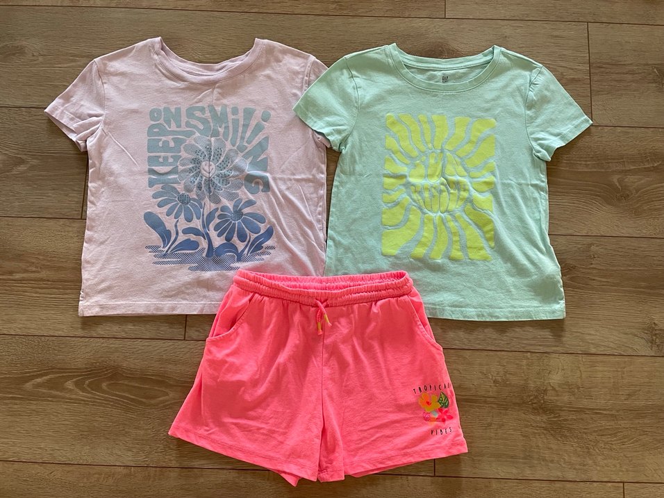 GAP 2’li çocuk tişört ve Lcw çocuk şort, 10-11 yaş, lila, turkuaz ve pembe renkler.