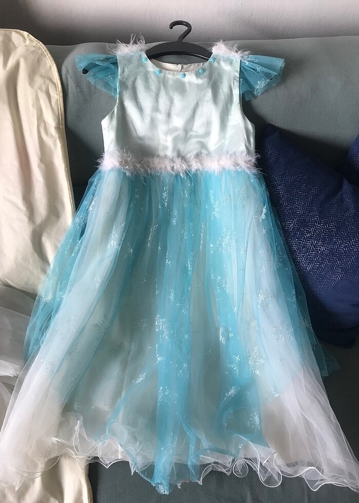 Kız çocuk abiye 6 yaş tam boy etek uclarında beyaz tülde deformasyonlar var biraz
