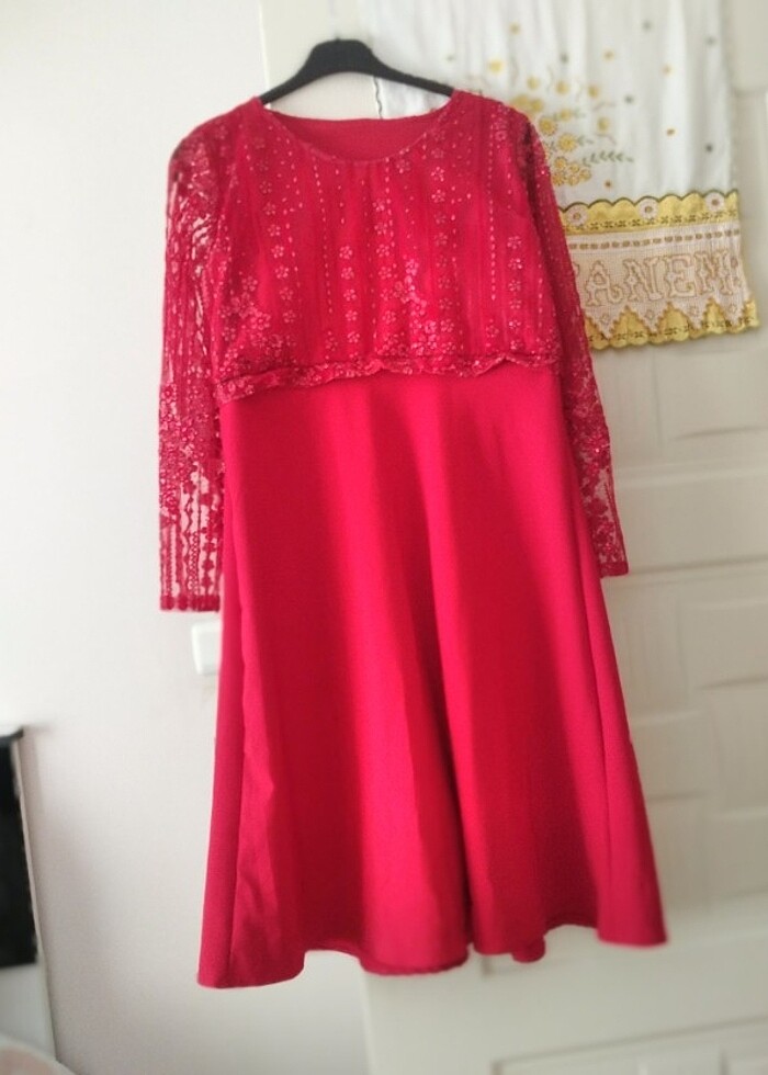 Kızım için terziden diktirdim kızım 70 kilo 1 55 boyunda bir defa kına için giydi daha giymeyeceği için satıyorum alan memnun kalır insanın üstünde güzel duruyor yani sadece simli olduğu için sim dökülüyor ztn çoğu abiyelerden de sim dökülüyor normal yani birde hafif tiftiklenmiş kenarları oda herhalde kolu simli olduğu için elbiseye değdikce öyle olmuş