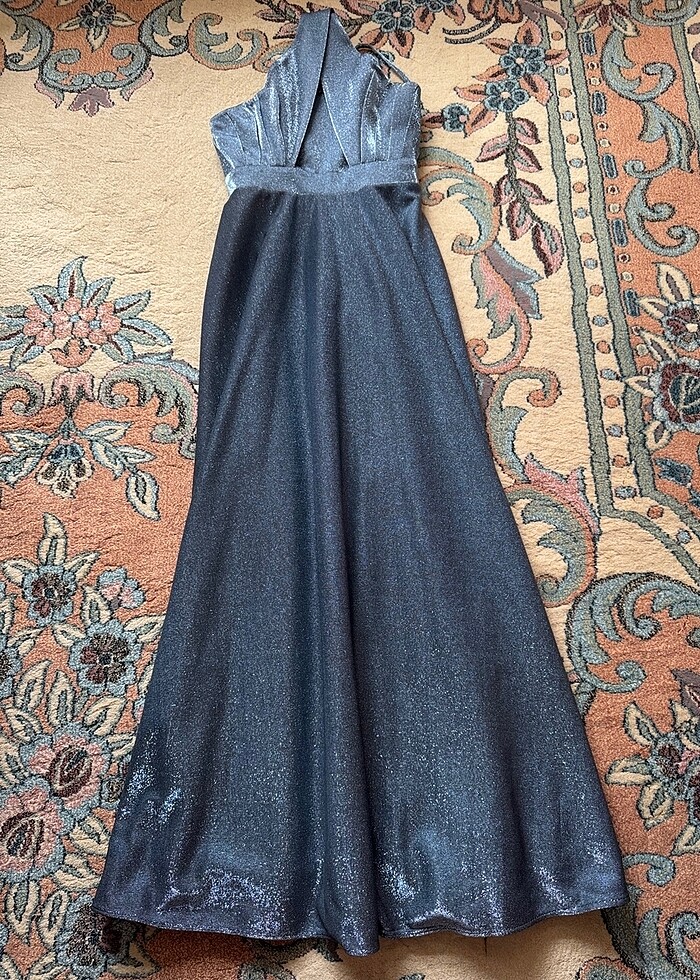 Çapraz askılı sırtı lastikli şık uzun abiye