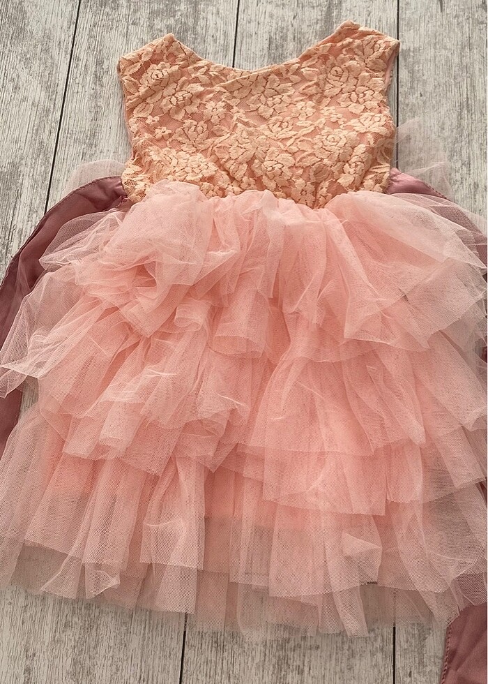 3 yaş için uygundur. Üst kısmı dantel alt kısmı tülden tütü şeklindedir. Belinde sabitsaten kumaşı bulunuyor. Arka kısmına fiyonk oluyor.