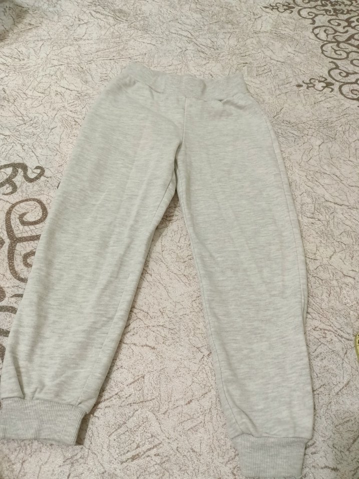 Yumuşak yünlü, gri renkte ve rahat kesimde çocuk eşofman. Bel ve paça kısmı lastikli, içi pamuklu yeniden farksız. Dört beş yaş uyumlu dur.