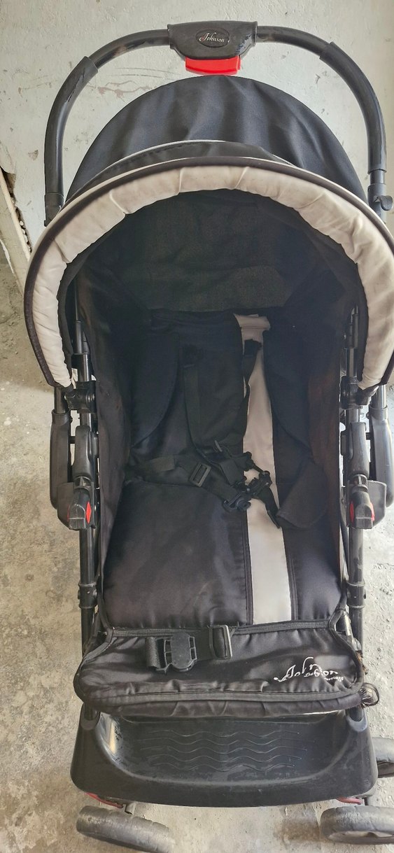 Çocuk arabası.Çift yönlüdur. Üstteki kırmızı düğme yayı aktif durumda değil ama yan taraftaki kollardan yönü değiştirilebiliyor